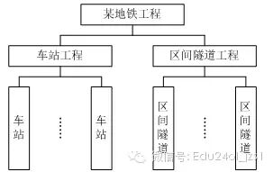 图中,矩形表示工作任务(或第一层、第二层子项目等),矩形框之间的连接用连线表示。